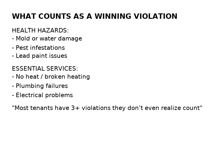 Six months ago, my friend filed for a rent reduction through this government process. Same city as me. Same type of violations. His apartment was actually worse: visible mold, documented roach infestation, heating that hadn't worked for years.